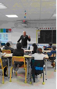 Yannick Lemercier à l'ėcole de A à Z pour le Corbeau et le Renard en gallo. image yannickgallo.jpg (22.5kB)